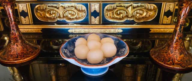 島原の湧水に乾燥柚子を一切れ入れて冷やしておきます。