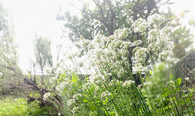 そしてニラの花。いわゆるニラ坊主っていうのかな。こうして見るときれいですよね。