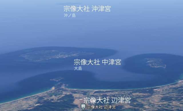 宮は九州本土宗像市の辺津宮と向かい合うように鎮座されています。