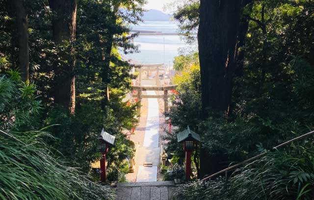宗像三女神のうち湍津姫神が祀られています。大島港から徒歩で6分です。
