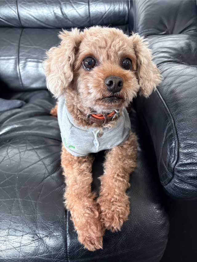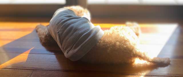 いつものとおり、顎を私の脚に乗せて寝息を立てるジル。愛おしい。