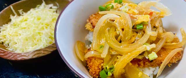 ハムカツ丼を家人に作ってもらいました。おいしい。