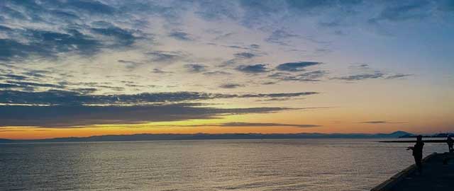 岸壁には釣り人の姿が点々と。連休最終日の正しい過ごし方です。