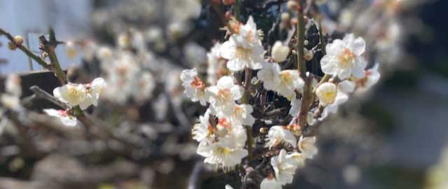 白い梅の花が咲き誇って迎えてくれました。春告草の別名を持つ梅。見る者の心を洗い流してくれるような白さ。