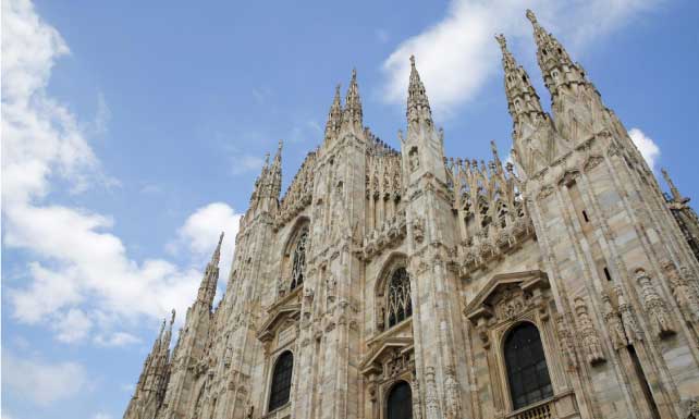 ミラノのドゥオーモ(ミラノ大聖堂)は高さ108mの威容を誇り、それは天に在す神へ近づく思いを表すものとしてしばしば説明されます。