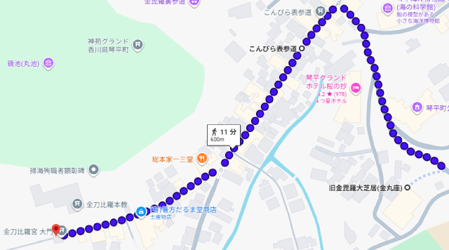 | ② | 表参道散策 | 約40分 | 食事も | こんぴらうどん 虎屋うどん |