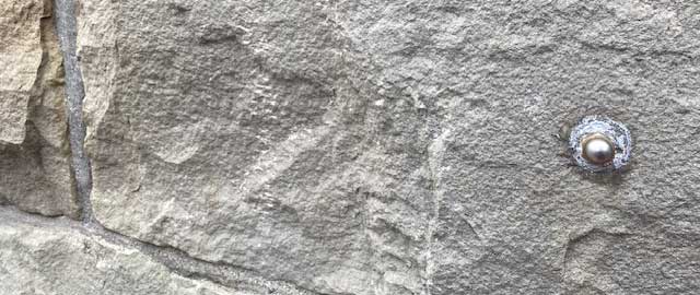 後に石の剥落を防ぐためにこのような金属製のボルトで補強がなされています。巨額の予算を投入し保全される銀行当局に頭が下がります。