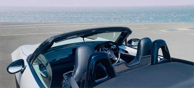 て、ことで、オープンカーの幌を開ける。