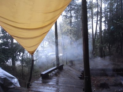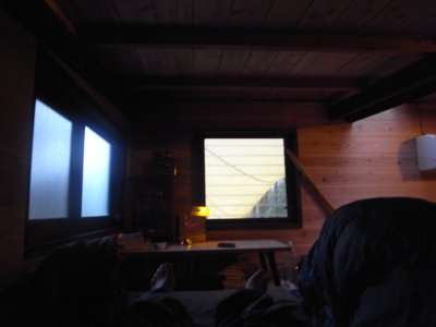 ドアを開ける。タープの下にイスを出して座り、あたりを眺める。濡れたデッキ、呼吸する樹、ウグイスの声、そぼ降る雨。そして確実な春の息吹。こうして世界は巡る。だいじょうぶ。だいじょうぶだとも。