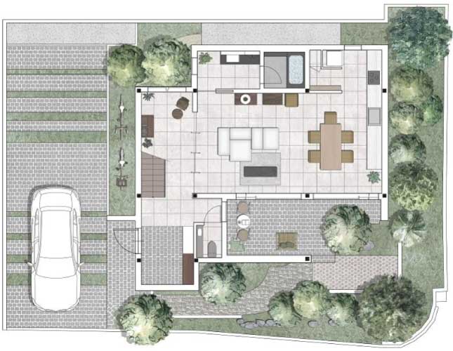 閉じこもった部屋以外は旭亭の窓という窓を開け放って外気を循環。内外が還流し、緑が身近に感じられる家が好きなんですね。