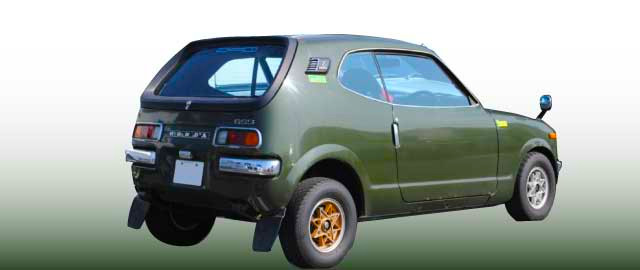 360ccのクーペスタイルでハードトップの4人乗り。リアウインドウは黒くて太い樹脂製枠から『水中メガネ』の愛称で呼ばれました。路面のガタゴトをつかむゴーカート的乗り心地が楽しくって、以来この小さくってガタゴト車好みはロードスターに繋がっています。