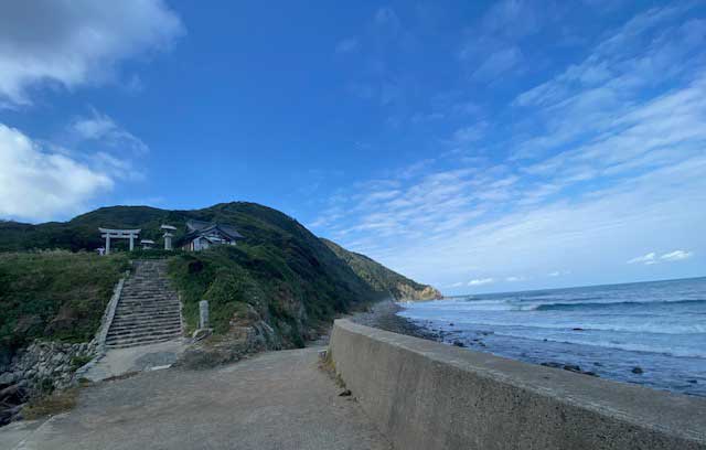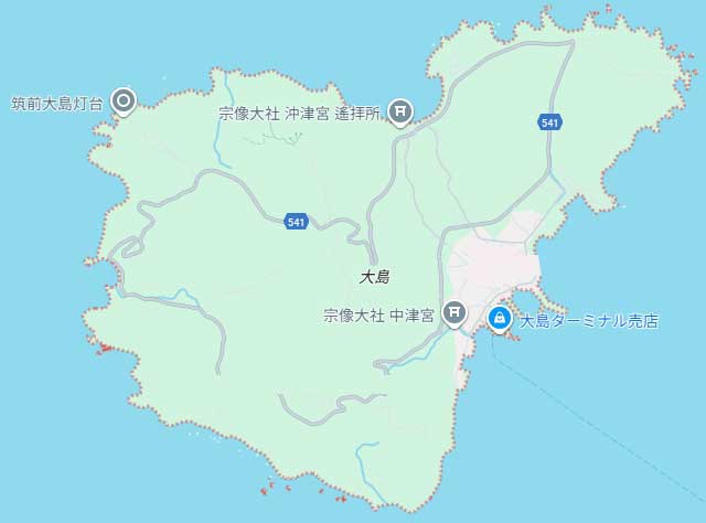 宗像三女神のうち湍津姫神が祀られています。大島港から徒歩で6分です。