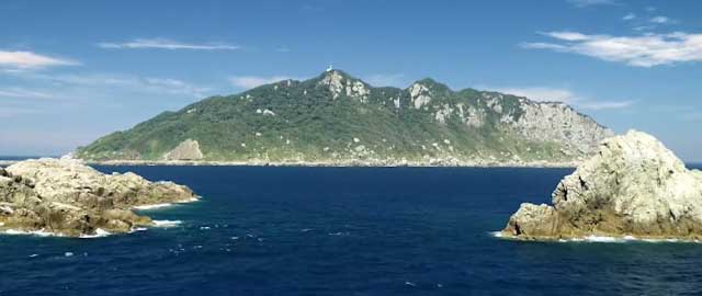 宮は九州本土宗像市の辺津宮と向かい合うように鎮座されています。