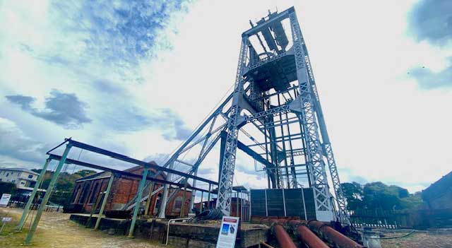 世界文化遺産。当時の面影を残す第二竪坑櫓は、高さ約22メートルで、現存する鋼鉄製の櫓では日本最古。