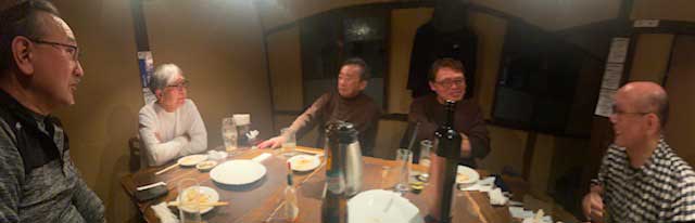 1軒目は「焼き鳥 まこと」。ドモドモと松永くん。備長炭で焼かれる焼き鳥は美味。