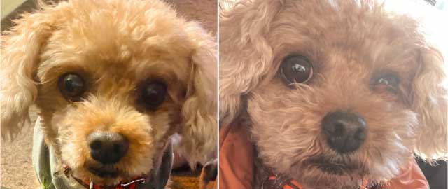 シャンプーして、顔のところを整えて、寒いからふわふわの毛にこれから一層なっていきます。