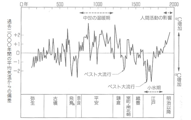 表を見てもお分かりのとおり、14世紀半ばから16世紀は寒冷期でした。これは小氷期といわれ、世界中で飢饉、そして乱や革命が起きたんです。